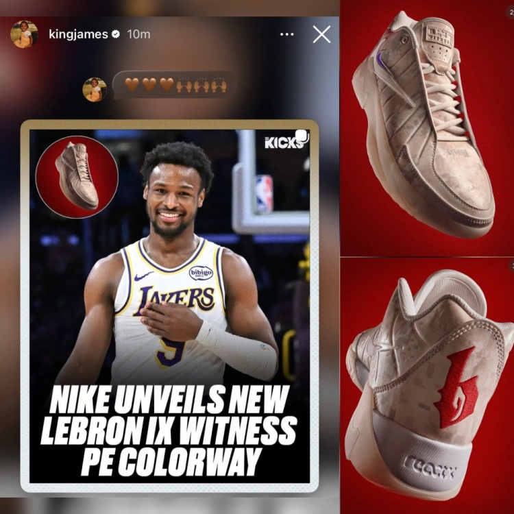 为爱子站台!詹姆斯更新社媒晒Witness IX球鞋的布朗尼专属配色