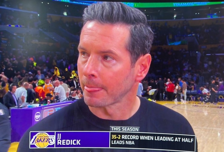 直播吧4月13日讯 NBA常规赛,湖人半场62-45领先爵士。主帅雷迪克在中场时接受了采访。