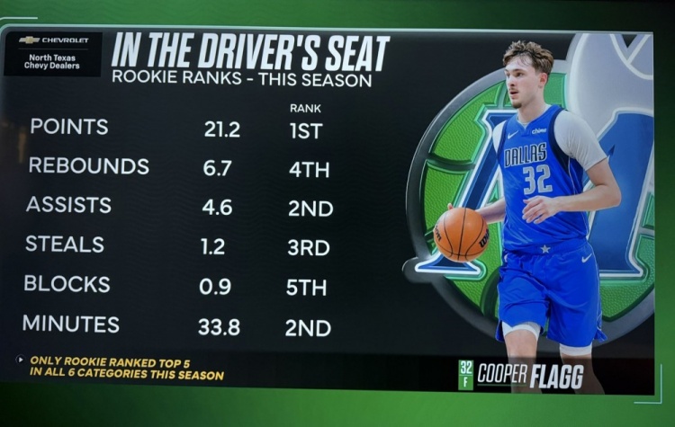 弗拉格场均得分&篮板&助攻&抢断&盖帽&时间均新秀前5 同届唯一