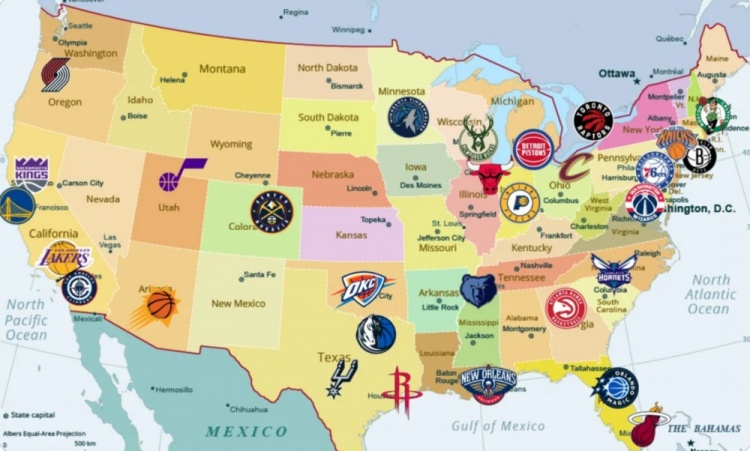 NBA球队分布地图