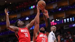 比赛开始,泰特里突外投帮助火箭打开局面,但怀特黑德连续3记三分回应,随后火箭10-0建立主动权,灰熊迅速回应8-0,火箭10-0领先6分,次节双方展开拉锯战,火箭里突外投12-0直接拉开20分以上领先,半场火箭领先21分。下半场,双方继续拉锯战,卡佩拉接连内线吃饼,谢泼德找到外线手感接连命中,火箭扩大到30分以上领先,末节火箭11-2继续扩大领先,随后双方开始练兵,最终火箭132-101大胜灰熊。