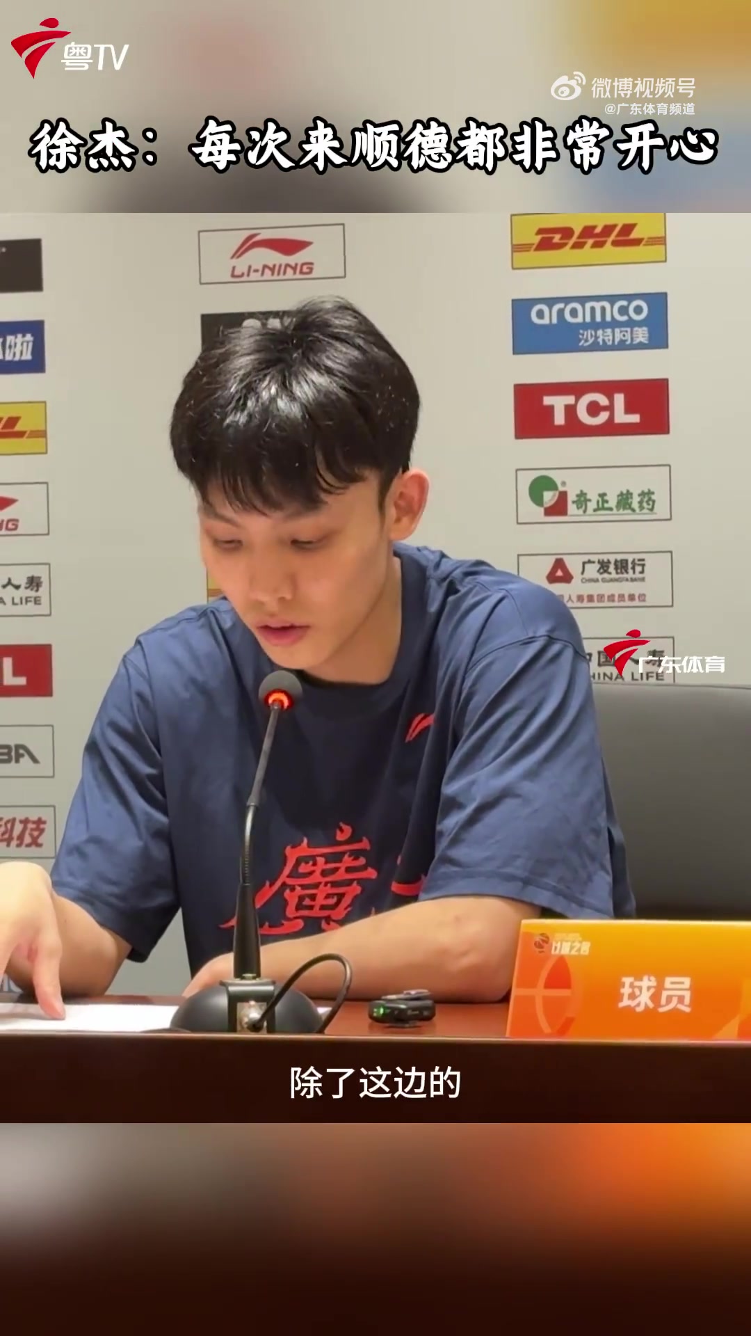 >徐杰:顺德球迷热情十足 美食球馆堪称顶级 很愿意经常过来打比赛