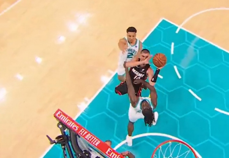 >凌波微步!希罗持球冲击篮筐 对抗防守换手抛投打进加罚