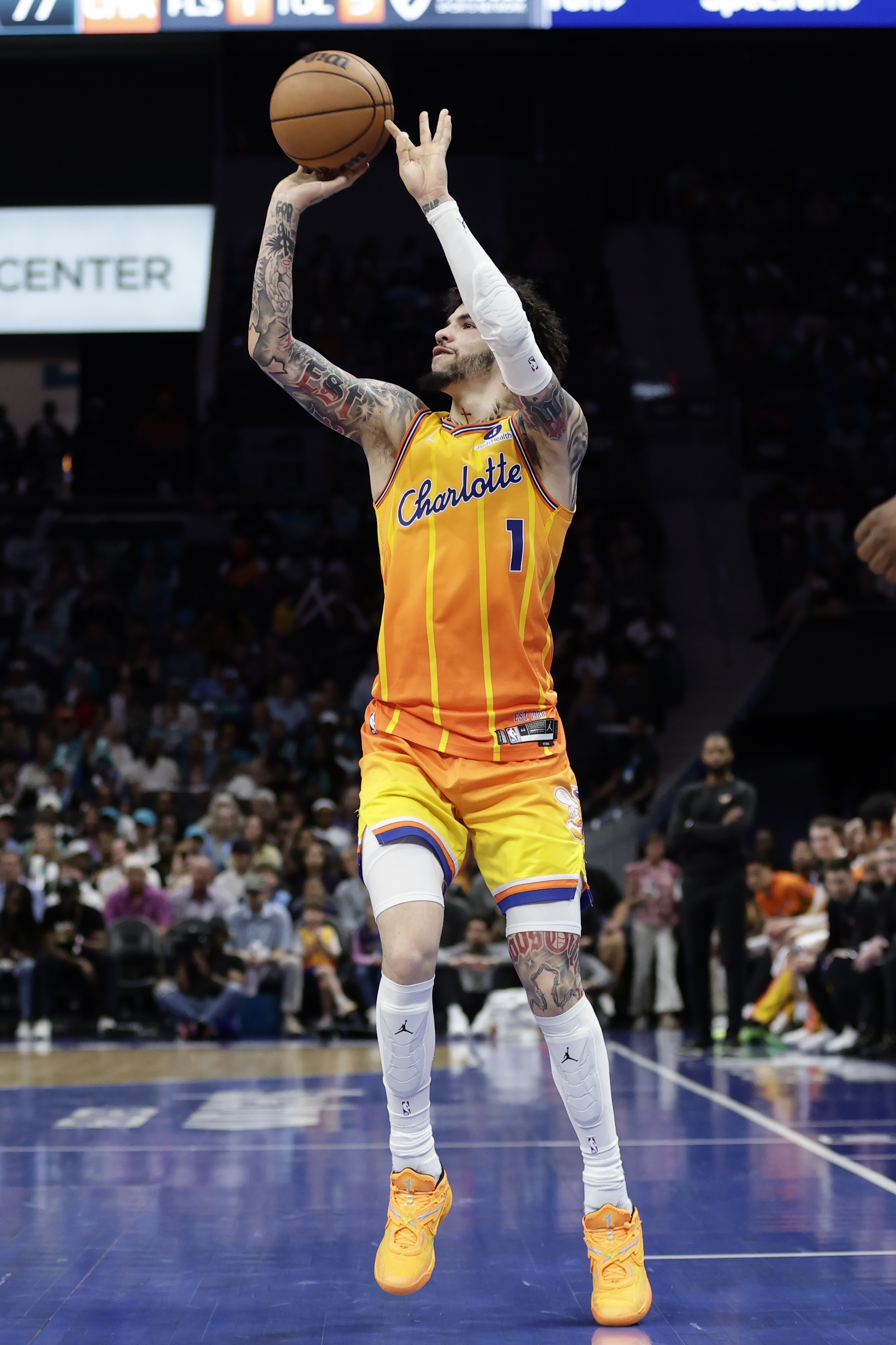 本场比赛,黄蜂当家球星拉梅洛·鲍尔上半场打得比较随意,但下半场恢复了合理的打法,全场他出战40分钟,31投仅12中、其中三分球16中2,拿到30分5板10助。