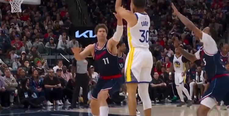 >哨子来了!库里外线三分命中还造成大洛犯规 成功打3+1