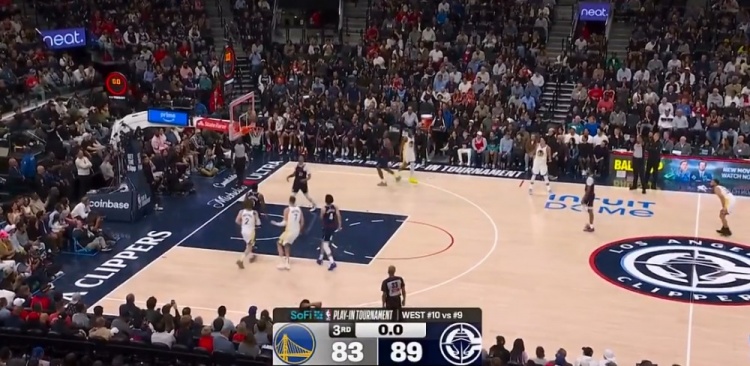 >差了一点点!库里吸引防守再分球 桑托斯超远三分涮筐而出