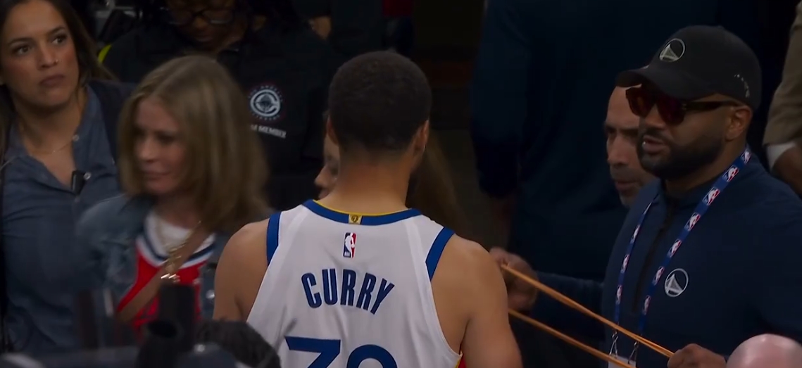 末节开打前 库里再次走回更衣室 目前已经回到场边替补席