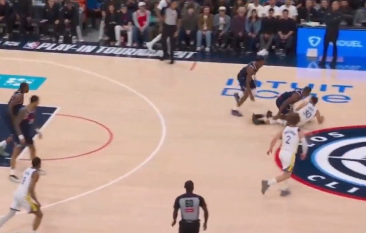 库里遭遇包夹倒地!美媒:他被干翻在地上 依然没有哨子啊😂