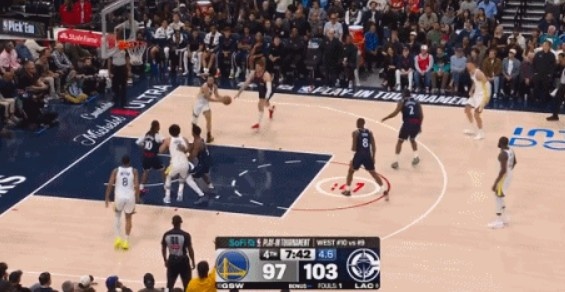 >好传!库里突入禁区接波尔津吉斯妙传 上空篮得分