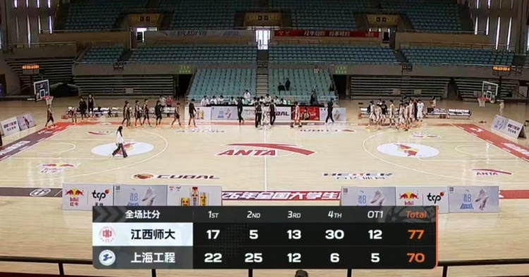 加时赛,金宇航两罚先领先,孙发航二次进攻打成后三分再中反超1分,熊权造杀伤反超回来,丁伯儒篮下强打后金宇航再造杀伤领先到5分,顾凡反击扣篮终结比赛,最终江西师大加时77-70逆转上海工程。