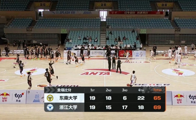末节东南大学依靠郑博轩连拿5分打破局面,随后陈泽茏反击取得进球,东南大学以一波7-0的攻势追至1分。袁海洋及时三分帮助浙江大学破荒止血,随后石凯旭也续上三分,浙江大学重新取得5分优势掌控比赛。末段东南大学紧追比分一度缩小至3分,不过读秒阶段石凯旭抢断帮助袁海洋打成2+1杀死比赛。最终,浙江大学69-65力克东南大学拿下比赛。