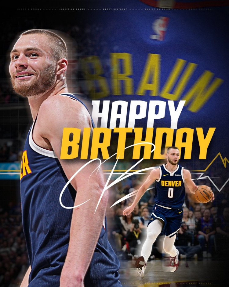 掘金官方发文祝福布劳恩生日快乐,球队官方社媒配文写道:“CB's day 🎉(布劳恩的生日)”