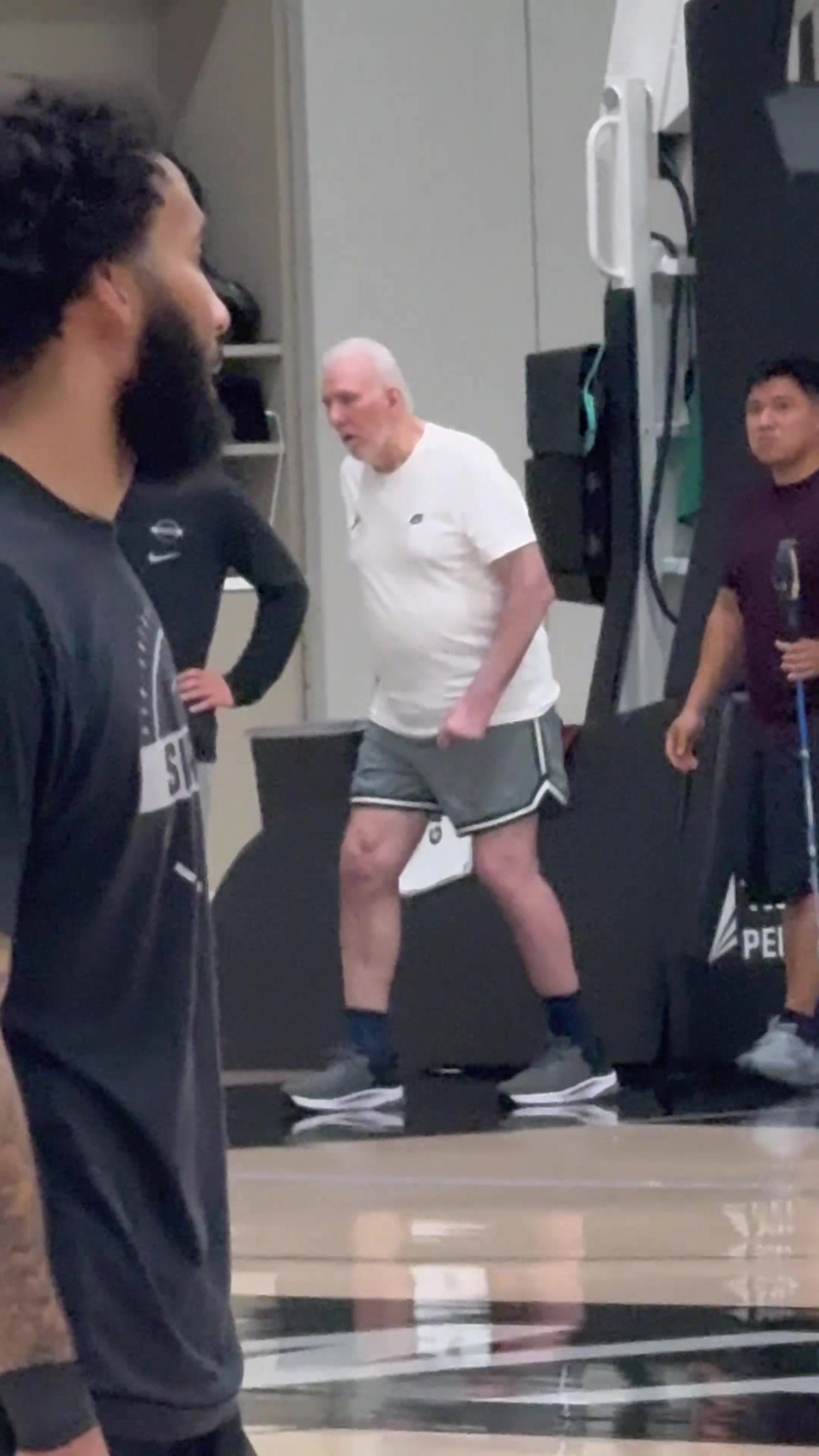 今日,马刺传奇教练波波维奇现身球队训练场,并在场上指导现任主帅米奇。