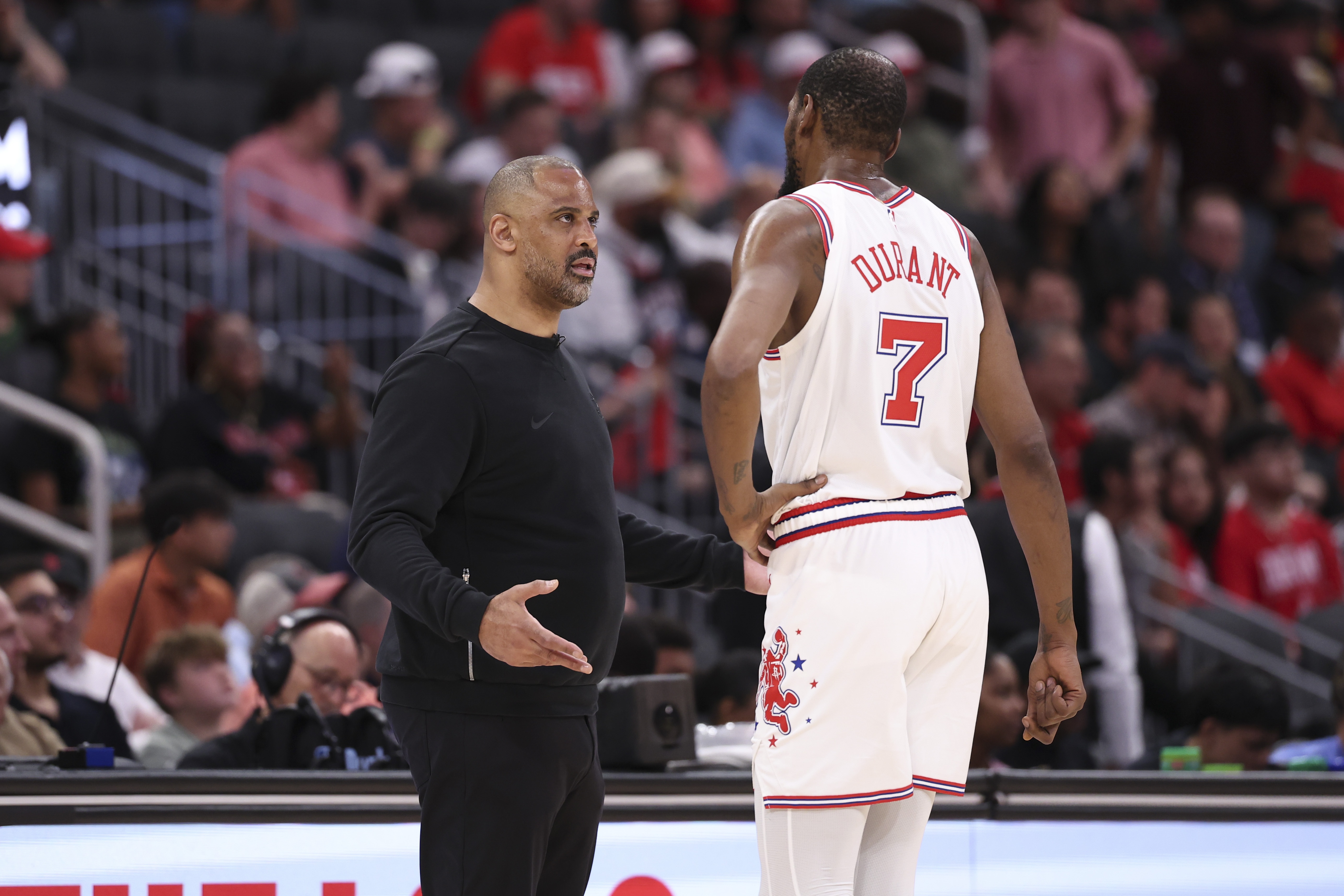 期间,他场均出战36.4分钟,排名全队第二,仅次于阿门的37.4分钟。这里面有12场杜兰特的出战时间40+分钟!