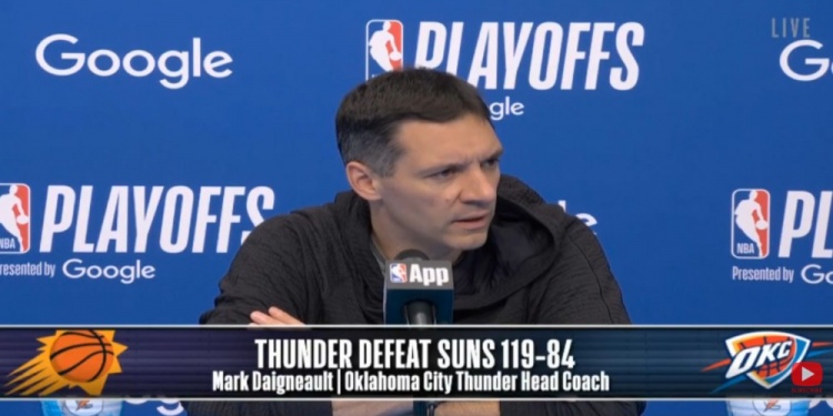 直播吧4月20日讯 NBA季后赛西部首轮G1,雷霆119-84大胜太阳35分,戴格诺特赛后接受了媒体采访,以下是完整采访内容。