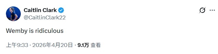 WNBA狂热队球星凯特琳·克拉克更推感叹:“文班亚马简直太离谱了!”