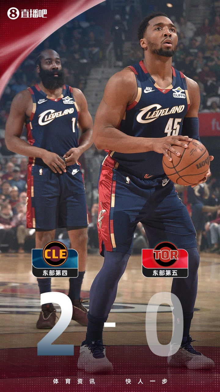 >🔱哈登米切尔莫布里三核轰83分!骑士掌控全局2-0猛龙!