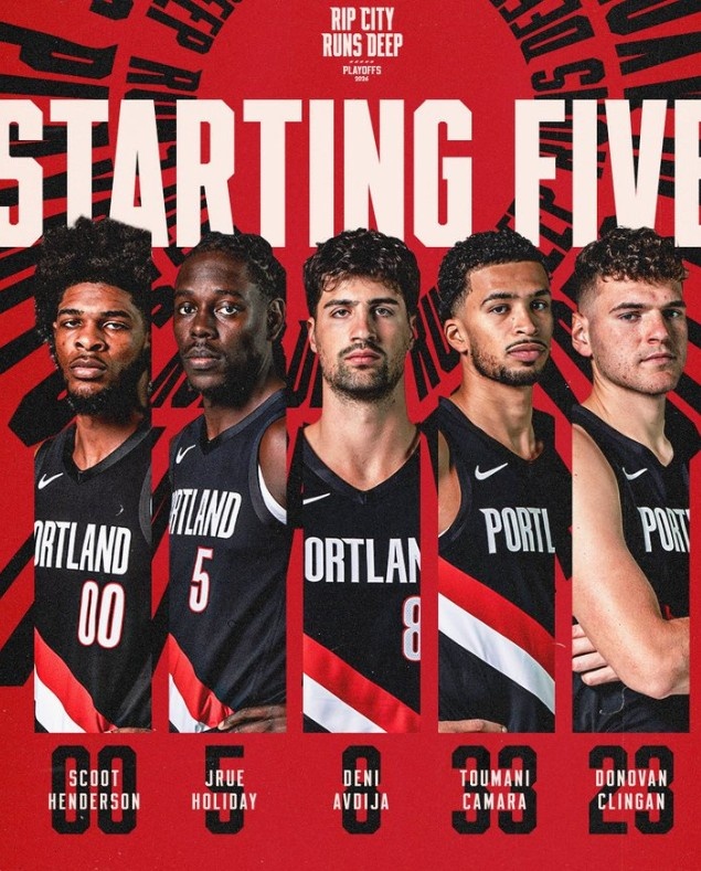 开拓者G2延续相同首发:亨德森/霍勒迪/阿夫迪亚/卡马拉/克林根