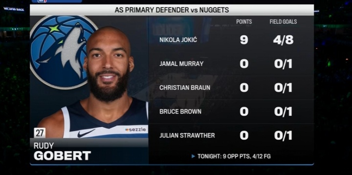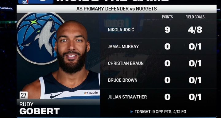 四届DPOY跟你闹呢?戈贝尔本场防守:约基奇8中4 其他4人一个没进