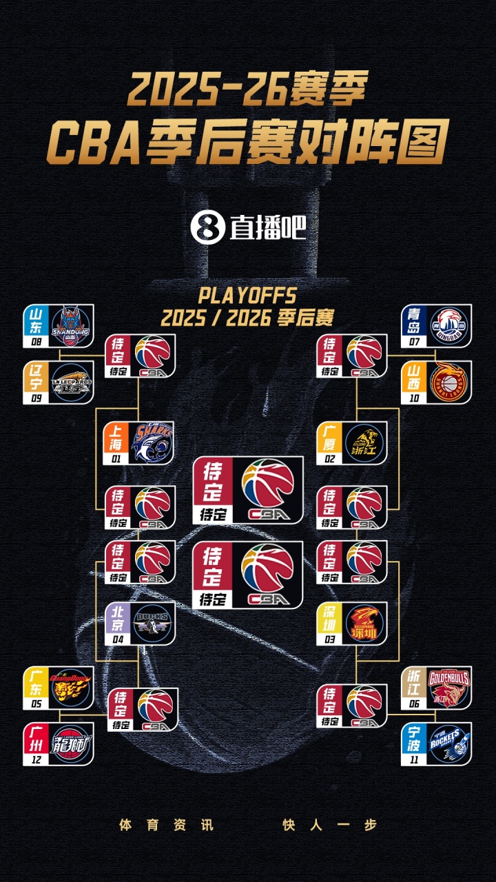 直播吧04月24日讯 CBA常规赛10场收官战全部结束,常规赛排名以及季后赛完整对阵就此出炉: