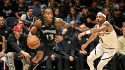 比赛开始,约基奇被戈贝尔防守得很难受,掘金进攻端尤其慢热打了近4分钟才拿到首分,戈贝尔攻防很凶,森林狼气势十足拉开双位数领先,次节纳吉里突外投助掘金追分,但森林狼9-0迅速回应,爱德华兹连续三分,道苏姆各种反击,森林狼半场领先到20分以上。下半场,约基奇进攻端还是找不到状态,道苏姆反击依然犀利,双方围绕着20分左右分差拉锯战,三节森林狼依然领先20分,末节双方命中率都有下降,约基奇三分加三罚追分,但麦克丹尼尔斯连得5分回应,森林狼牢牢保持住领先优势,最终森林狼113-96轻取掘金。