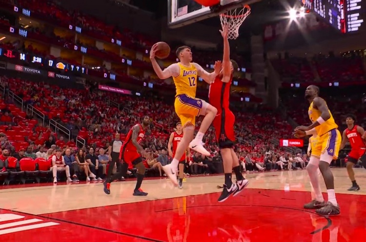 >可惜!拉拉维亚底线起飞潇洒反篮上进 但被吹进攻犯规进球无效