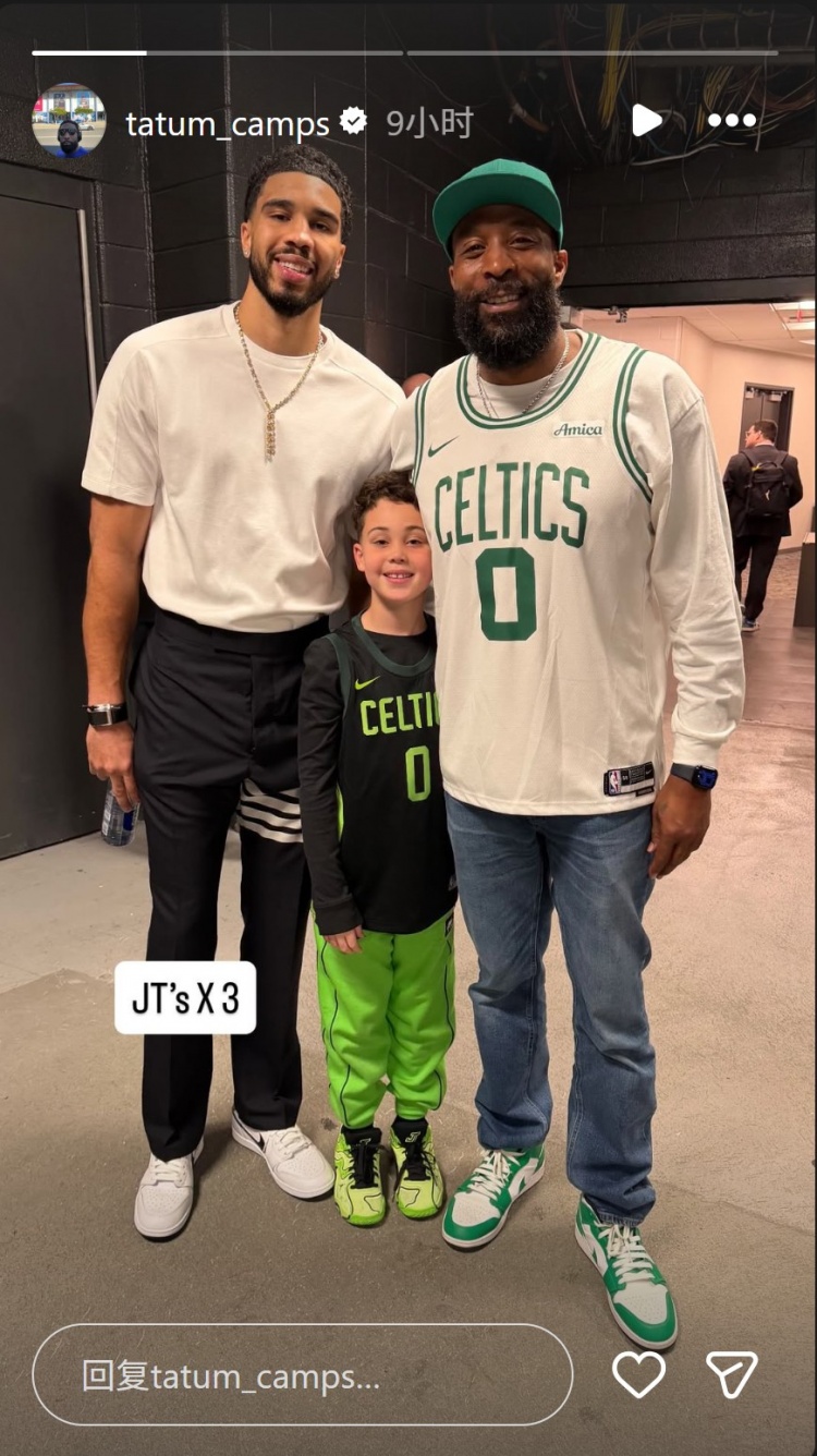 塔图姆父亲晒与儿子&孙子三代同框照 3人年龄分别是47岁/28岁/8岁