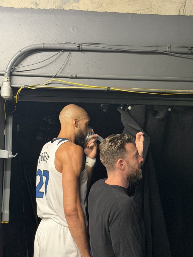 据丹佛体育电台《The Drive》节目主持人Zach Bye爆料,森林狼中锋戈贝尔在比赛中似乎出现了不适应丹佛高原的情况,被拍到在球员通道内吸氧。
