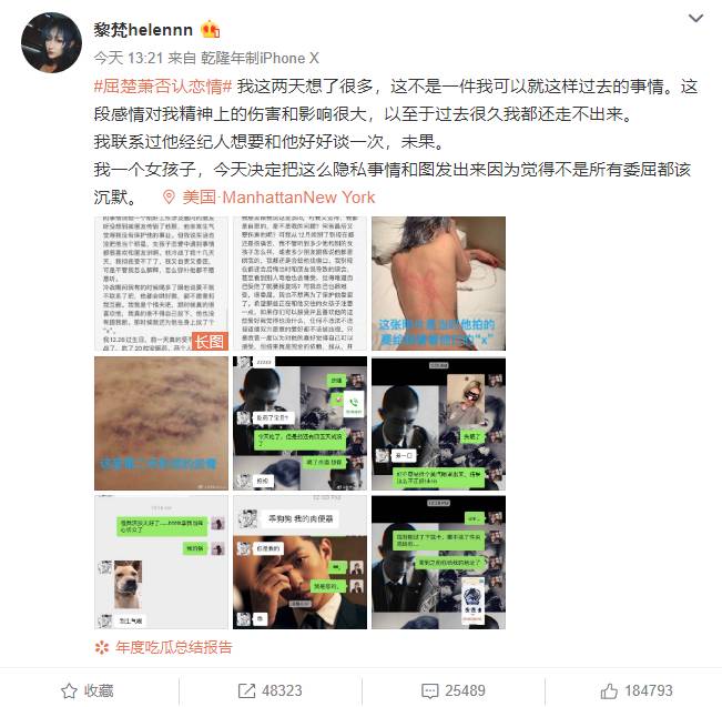 黎梵在微博上写道:“我这两天想了很多,这不是一件我可以就这样过去的事情。这段感情对我精神上的伤害和影响很大,以至于过去很久我都还走不出来。