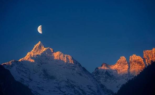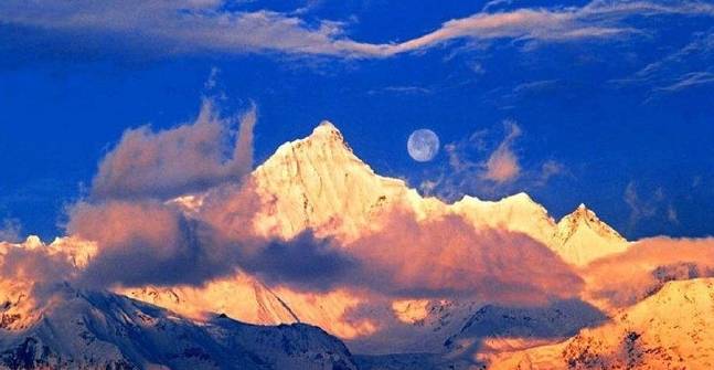 6月9日,云南迪庆,德钦县飞来寺梅里雪山出现“日照金山”、“日月同辉”的壮丽景象,吸引了不少游客,大家惊叹“太幸运啦”。