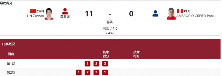 最终,林祖沈以绝对优势11-0击败对手成功晋级8强。林祖沈将在八强中对阵印度选手普尼亚。