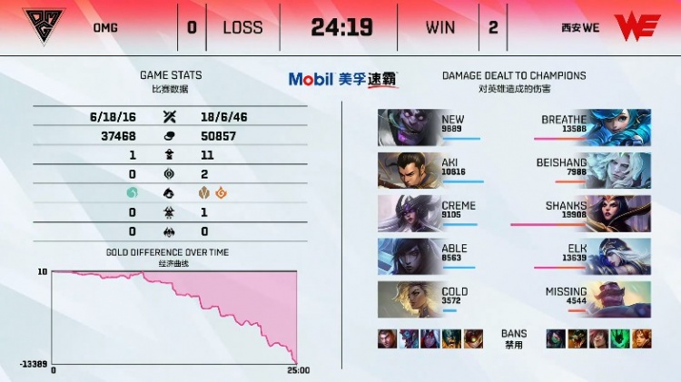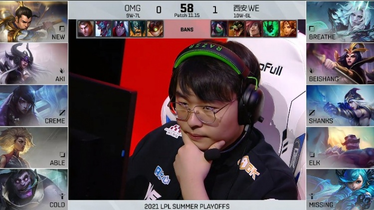 OMG:上单NEW、打野Aki、中单Creme、下路Able、辅助COLD