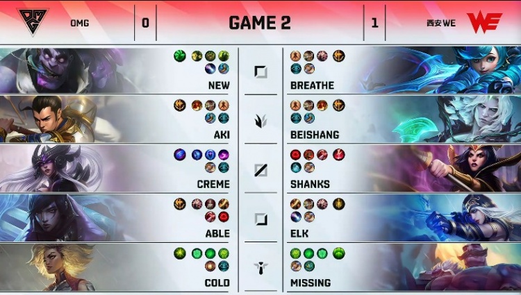 WE:上单Breathe、打野beishang、中单Shanks、下路Elk、辅助Missing