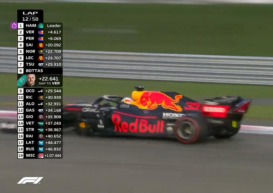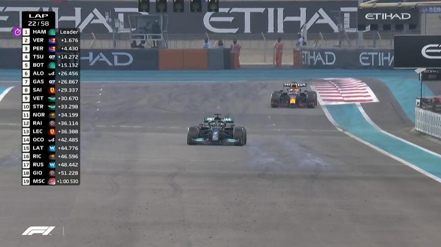 第38圈,汉密尔顿与维斯塔潘差距为17秒。