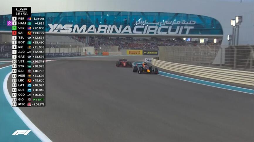 第18圈,维斯塔潘超越还没进站的塞恩斯,此时他距离汉密尔顿已有8秒。
