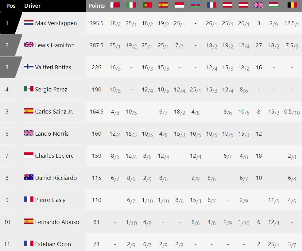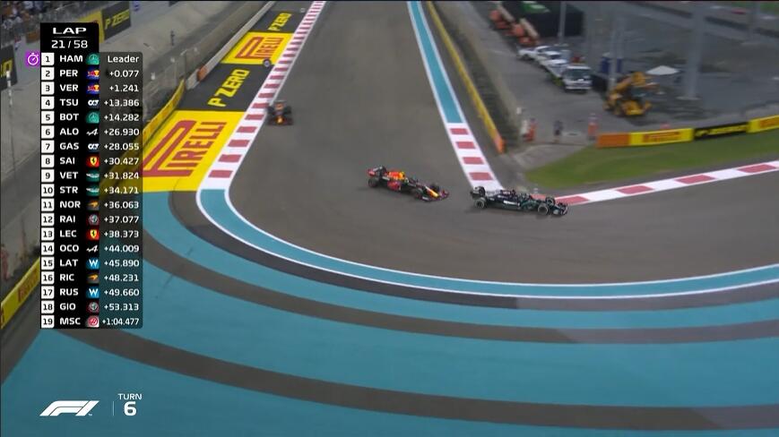 起步首弯,汉密尔顿直接超越维斯塔潘升至首位。随后维斯塔潘在缠斗中迫使汉密尔顿驶出赛道,汉密尔顿回到赛道后依旧在维斯塔潘身前。赛会表示这起事件无调查必要。