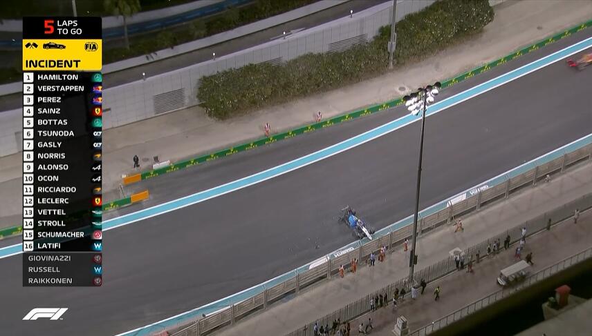 第53圈,拉提菲与米克-舒马赫缠斗后,赛车失控撞墙退赛。赛会出动安全车。