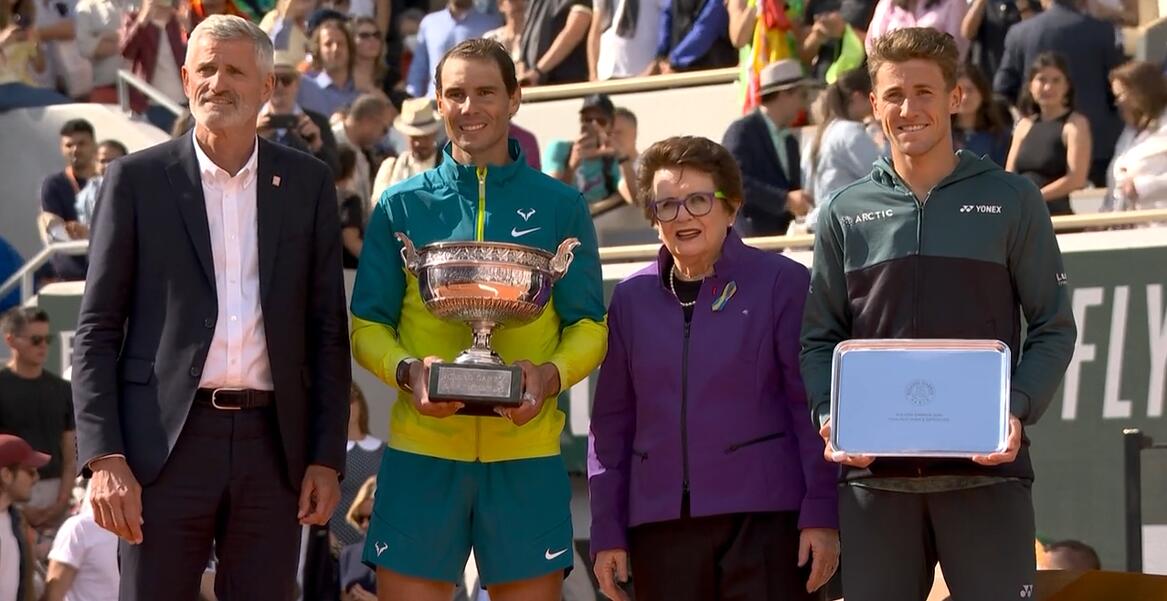 直播吧6月5日讯 2022赛季第二项大满贯赛事法国网球公开赛,在法国巴黎罗兰加洛斯进入到正赛最后一个比赛日的争夺。男单决赛当中,5号种子拉斐尔-纳达尔第二盘打出连拿11局的冲击波,6-3、6-3、6-0轻取8号种子卡斯柏-鲁德,拿下了职业生涯第14个法网男单冠军奖杯,同时也是其职业生涯的第22个大满贯男单冠军奖杯。依靠着这个冠军,纳达尔超越了自己的同胞前辈安德烈斯-吉梅诺,成为了法网历史上最年长的男单冠军。比赛耗时2小时20分钟。