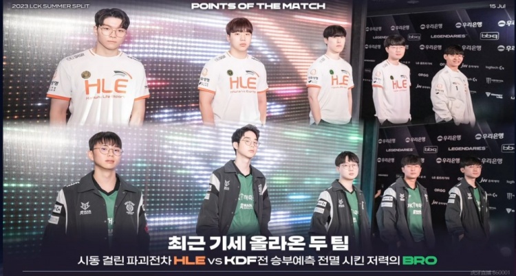 直播吧7月14日讯 2023年LCK夏季赛常规赛第二轮继续进行,今天的第二场比赛是HLE对阵BRO!