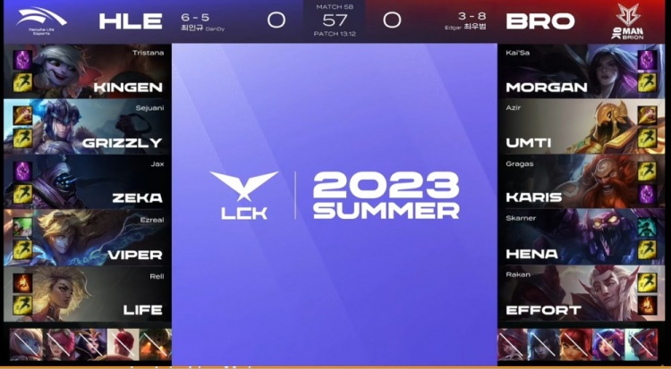 HLE:上单Kingen、打野Grizzly、中单Zeka、下路Viper、辅助Life