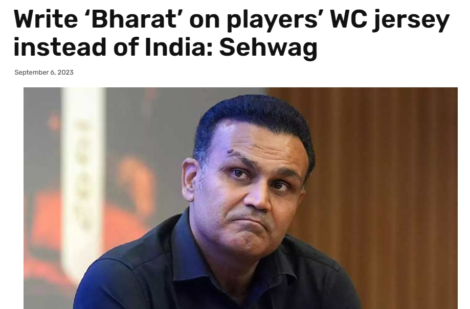 直播吧9月6日讯 外媒nagalandpost报道,印度前板球运动员赛瓦格呼吁,希望印度队身穿国名为“巴拉特”而非“印度”的球衣出战板球世界杯。