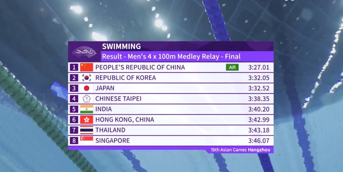 最终,中国军团游出了3分27秒01,大幅度刷新他们在世锦赛刚刚创造的亚洲纪录并摘金。