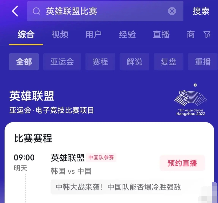 直播吧09月27日讯 杭州亚运会英雄联盟项目,四强赛将迎来中国队与韩国队的对决。亚运会抖音赛程官网发出了预告,给出的配文为:中韩大战来袭!中国队能否爆冷胜强敌。
