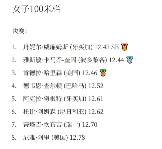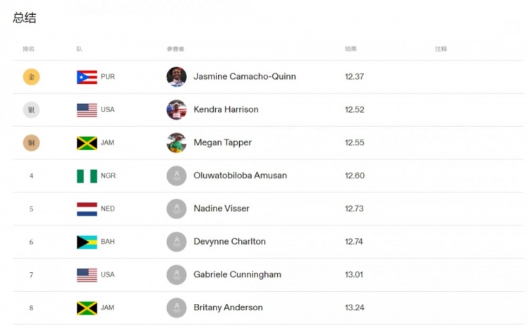 女子100米栏是一个竞争非常大的项目,早在上世纪八十年代,保加利亚的东科娃就把世界纪录顶到了12秒3以内,在去年的田径世锦赛上,尼日利亚的阿姆桑更是跑进12秒20大关,创造了12秒12的世界纪录(这位大神在决赛好风凭借力,一口气跑出12秒06的成绩,可惜因为顺风风速过大,未被认定为世界纪录)。
