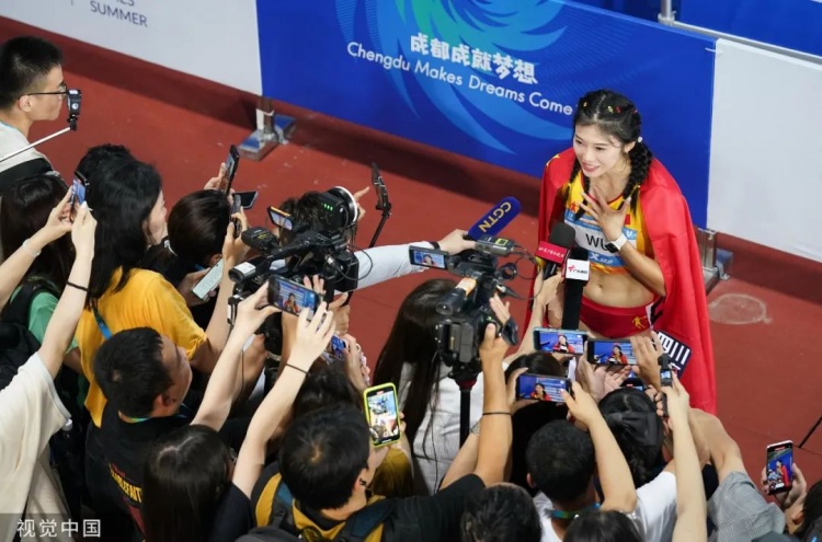 不管愿不愿意,你都不可能没听说过吴艳妮。她右臂上花环缠着王冠的纹身,起跑前双手比划胸口的名牌随后抬手指天的招牌动作,极强的镜头感和关于颜值、成绩、性格、炒作等话题的大杂烩,让这个名字在一波未平一波又起的流量场上,牢牢占据着一席之地。