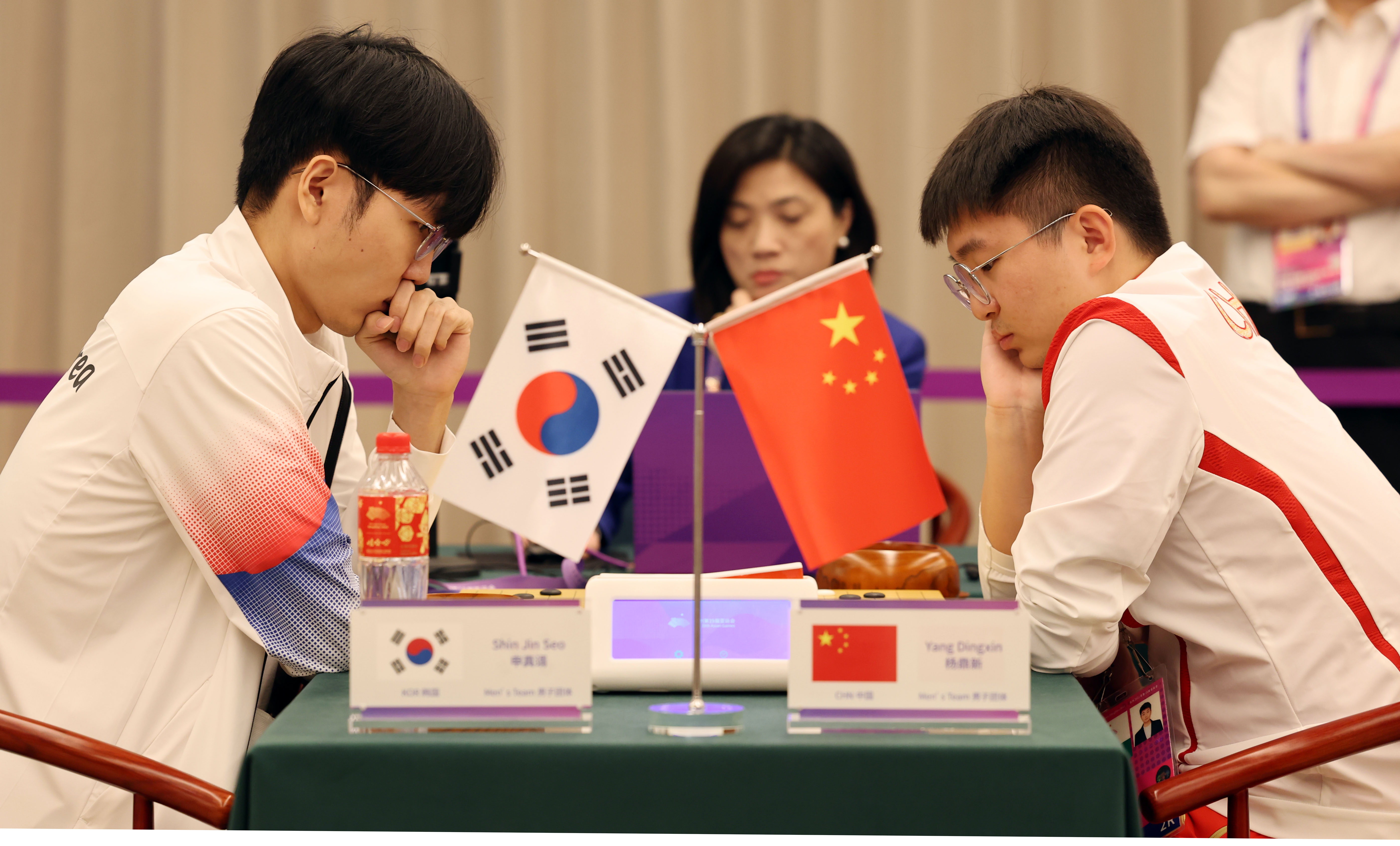 直播吧10月3日讯 杭州亚运会,围棋男子团体金牌决赛中,中国选手李钦诚、赵晨宇、芈昱廷、杨鼎新、柯洁出战,最终遗憾1-4不敌韩国队收获银牌。