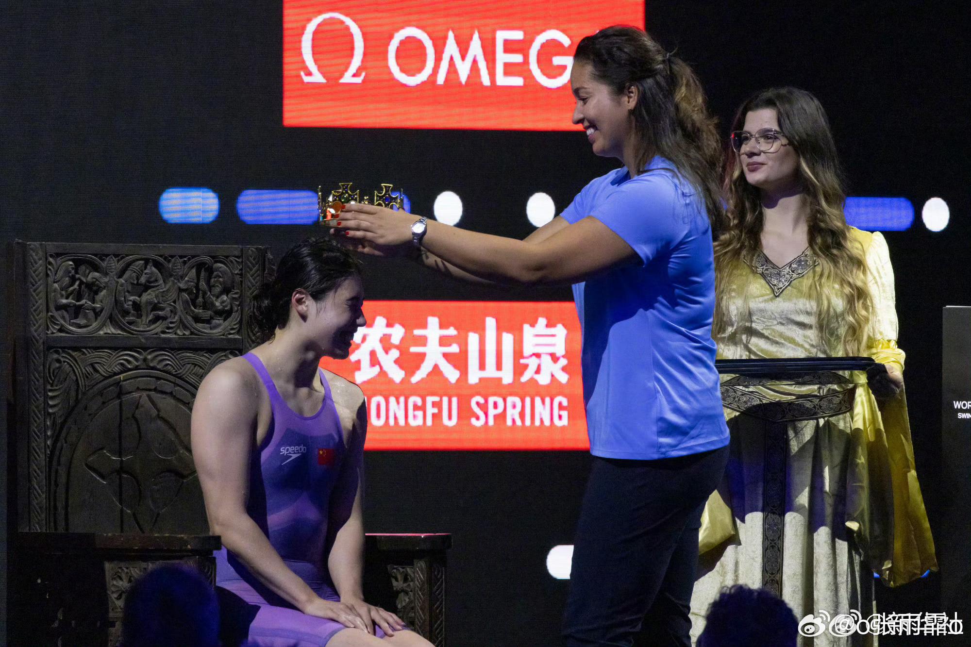 赛后,主办方还在赛后安排了授予他“蝶后”王冠的仪式。