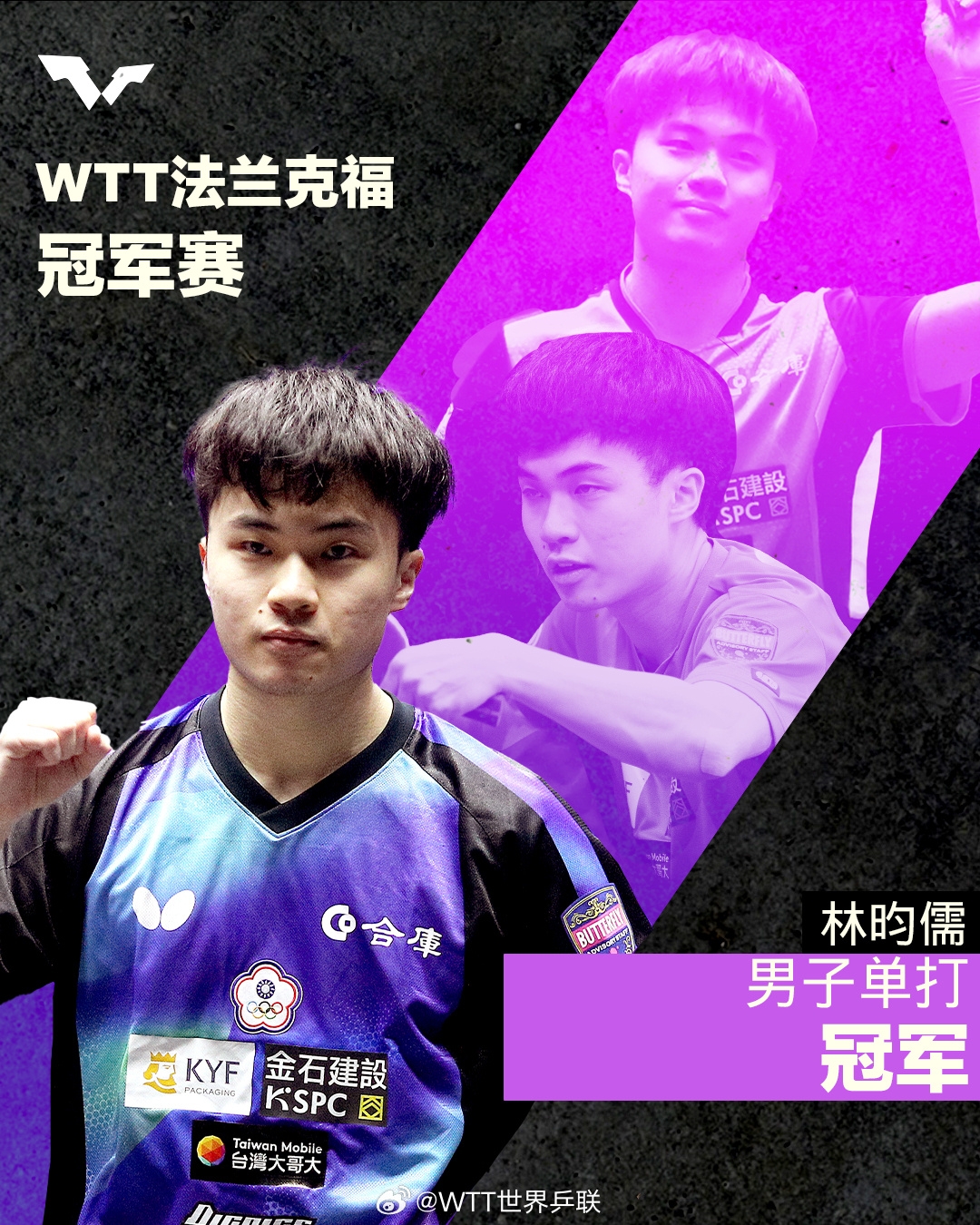 直播吧11月5日讯 WTT法兰克福冠军赛男单决赛,林昀儒4-1击败马龙夺冠,5局比赛的比分分别是7-11,11-7,13-11,12-10,12-10。林昀儒夺得冠军,马龙获得亚军。