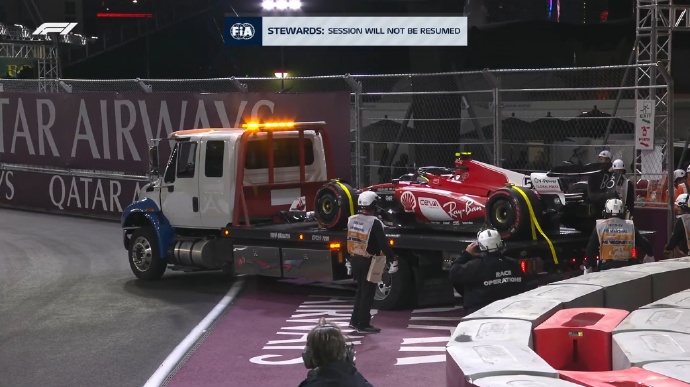 比赛开始不到10分钟,塞恩斯的赛车疑似压到赛道上的井盖发生颠簸,导致赛车熄火。一练也提前结束。塞恩斯、奥康和周冠宇的车都有损伤。