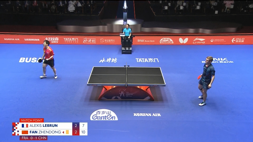 第二场:樊振东3-2(9-11,11-4,8-11,12-10,11-7)艾利克斯-勒布伦